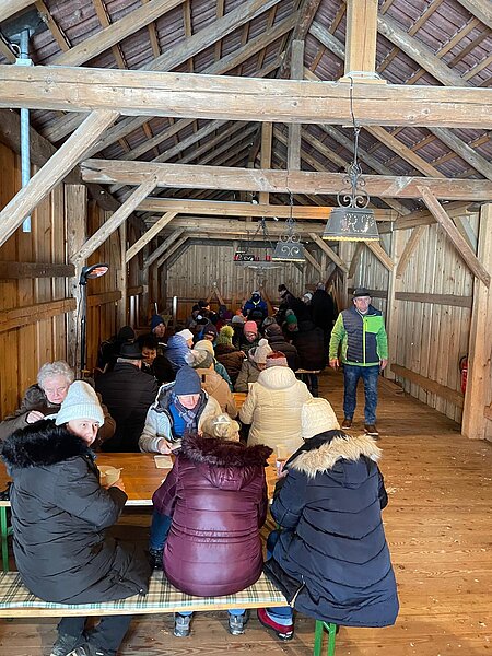 Nach einem gemeinsamen Gruppenfoto führte uns der Weg Richtung Traun zum Forsthaus. Zum gemeinsamen Abschluss kamen die Wanderer bei einer wohlverdienten Gulaschsuppe dort zusammen, das für Wärme und neue Energie sorgte. In gemütlicher Runde blieb Zeit für Gespräche und einen Rückblick auf das vergangene Jahr.