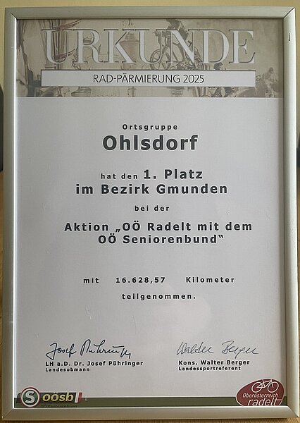 Im Rahmen der landesweiten Aktion “OÖ radelt” wurden von 20. März bis 30. September 2025 wieder tausende Kilometer gesammelt – und der Seniorenbund Ohlsdorf war mit großer Begeisterung und Ausdauer mit dabei.